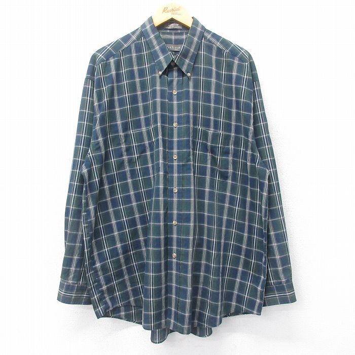 - XL/古着 バンヒューセン 長袖 シャツ メンズ 00s 大きいサイズ ロング丈 コットン 開襟 オープンカラー 緑 グリーン チェッ