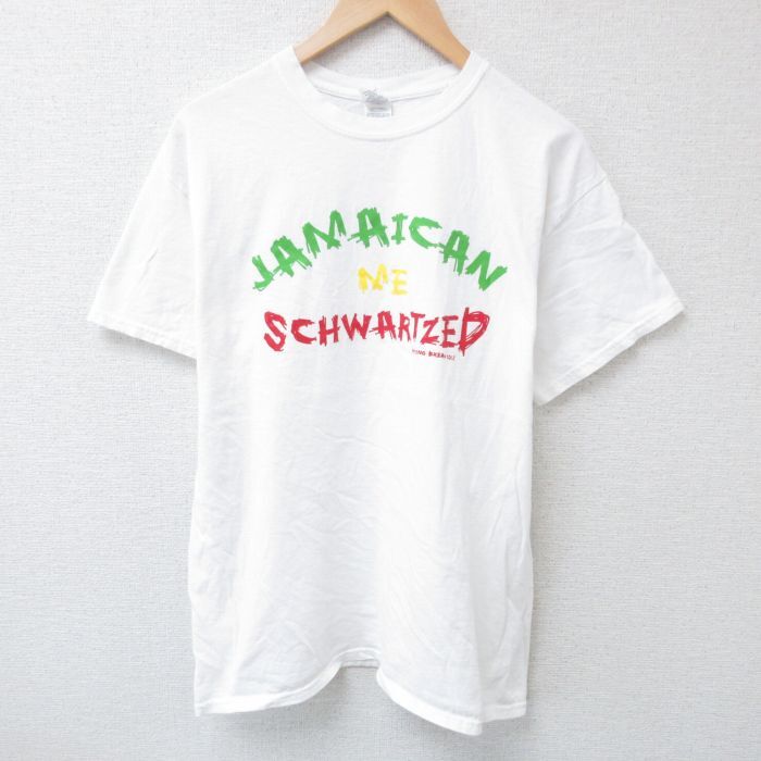 - L/古着 半袖 Tシャツ メンズ ジャマイカ コットン クルーネック 白 ホワイト 24jun28 中古