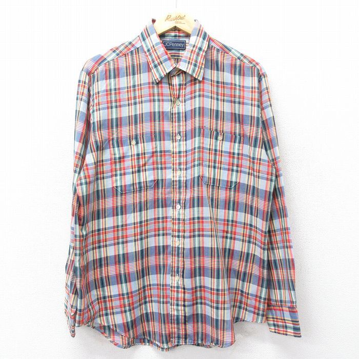 - L/古着 JCペニー 長袖 シャツ メンズ 80s 紺 ネイビー チェック 23oct30 中古 トップス