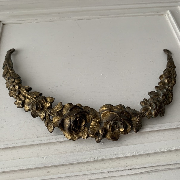 - フランスアンティーク ローズガーランド ブロンズ オーナメント 天蓋装飾 パーツ 古い家具 装飾 リメイク材料 ハンドメイド L