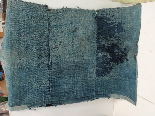 - 藍染め古布 刺し子 93cm 60cmぼろ布 31幅3枚つなぎ 江戸明治期