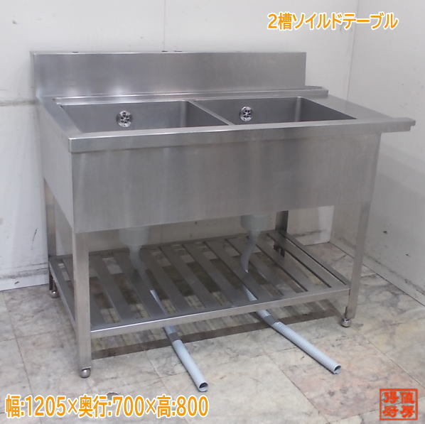 > ステンレス 2槽ソイルドテーブル 1205×700×800 食洗機用シンク 中古厨房/25F1210Z