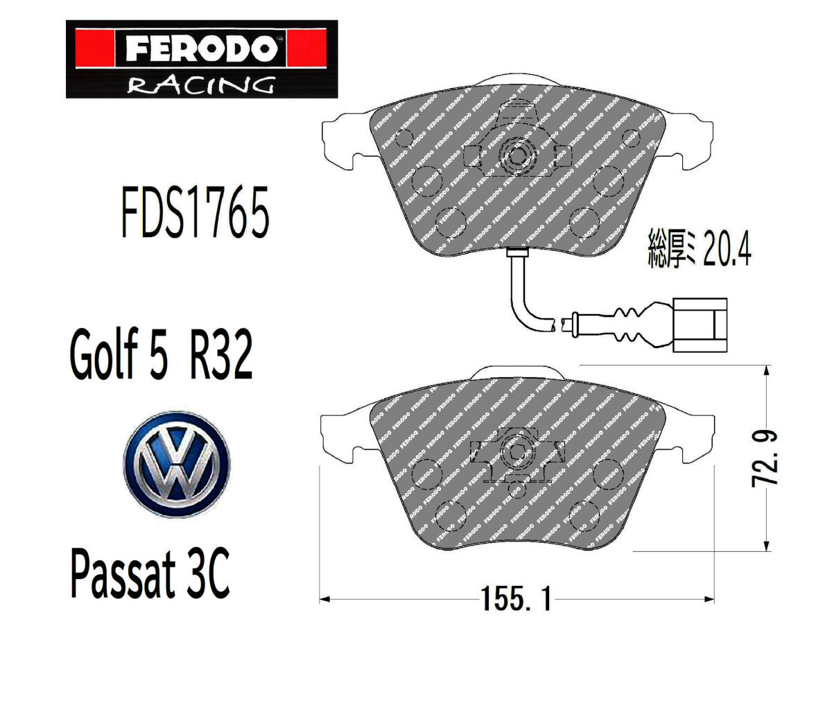 - VW Golf 5 R32、Passat 3.6 など FERODO ストリートスポーツ パッド フロント特価