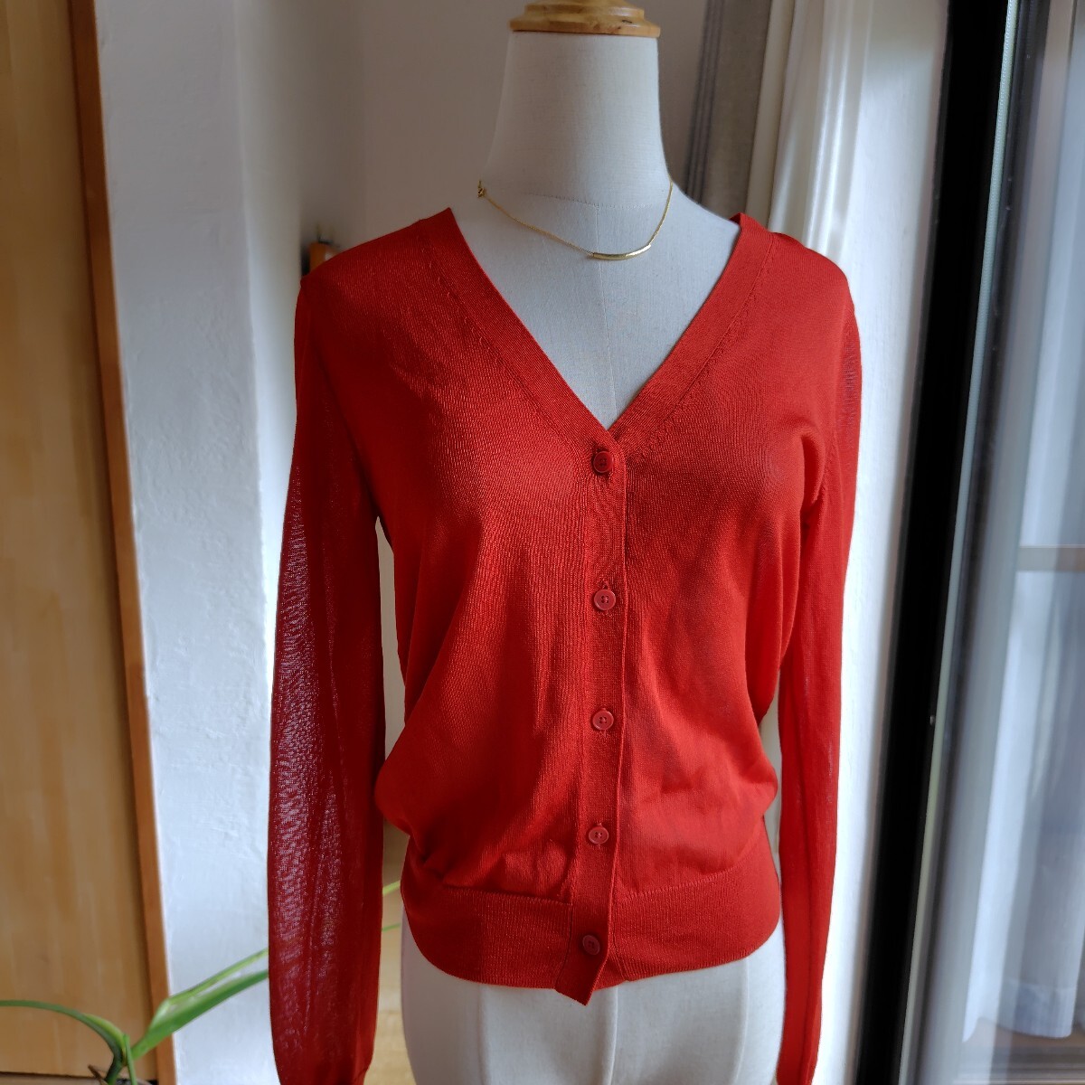 - 新品 ユニクロ 長袖カーディガン S くすみ オレンジ系 差し色に☆