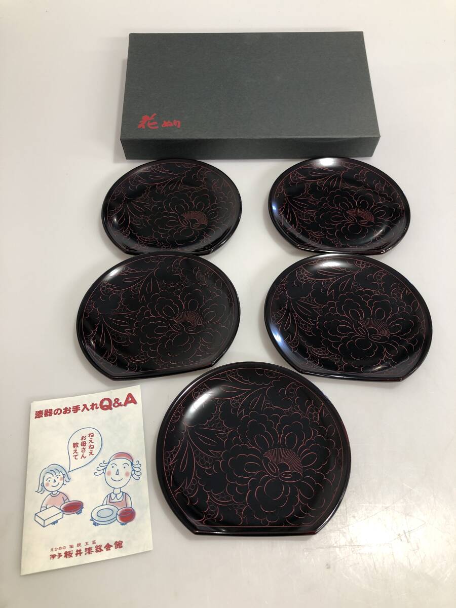 - B4883 半月銘々皿 牡丹彫 桜井漆器