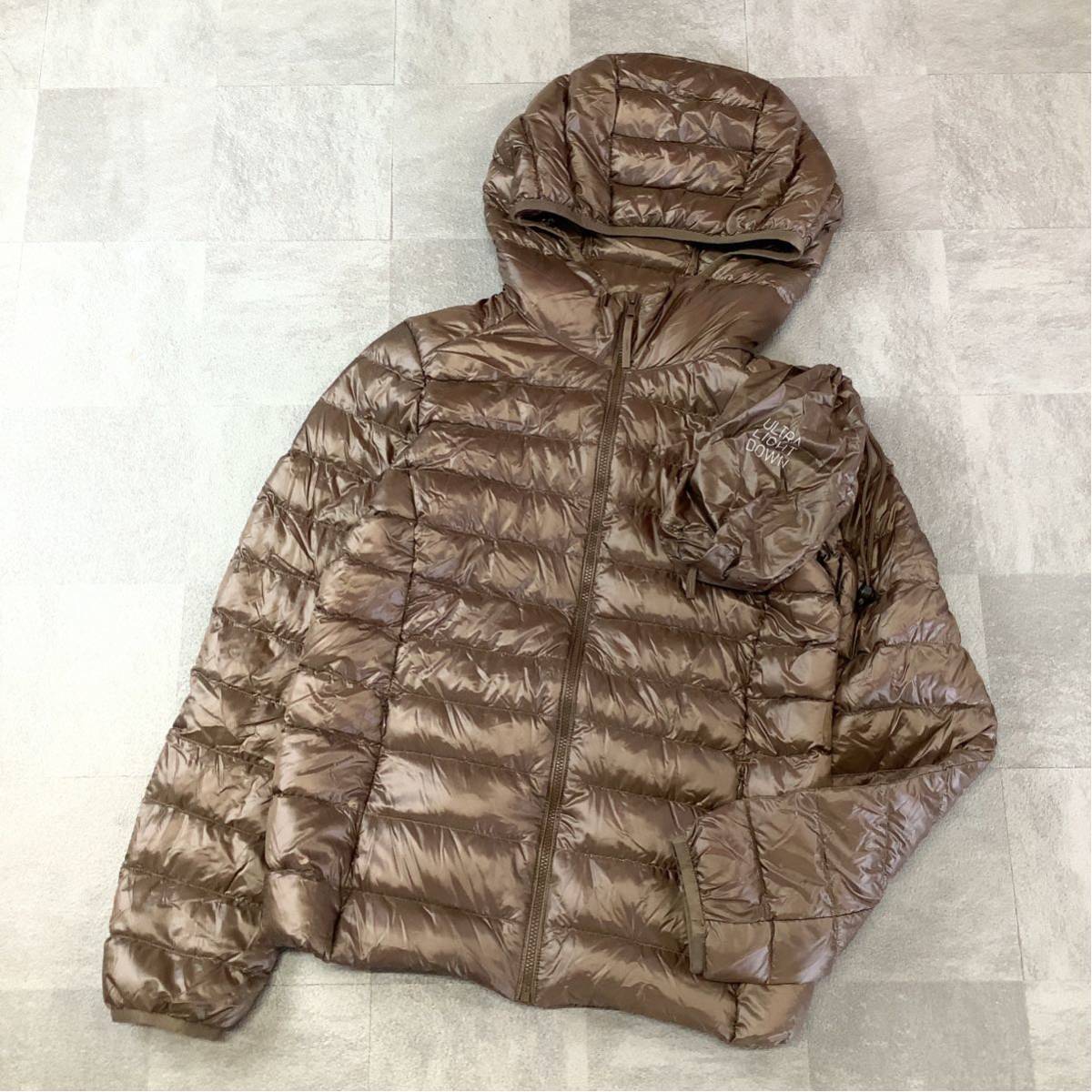 - 美品 ユニクロ UNIQLO ウルトラライトダウンパーカー ダウンジャケット レディース Sサイズ ブラウン golf ゴルフウェア 軽量ダウン