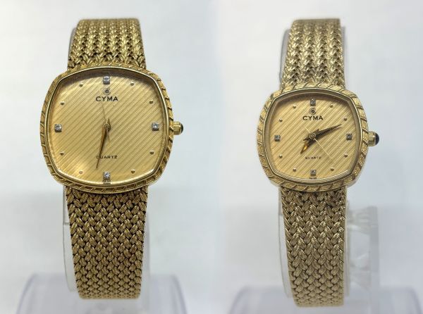 - 【稼働品】シーマ CYMA 604SP/616SP 2本セット 3針 ゴールド文字盤 クォーツ 腕時計 メンズ レディース