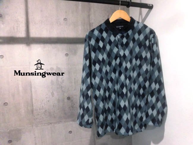 - Munsingwear マンシングウェア ルームウエア ダイヤ柄 モコモコ フリースシャツ M/アーガイル/紺 グレー/メンズ/GOLF ゴルフ/程度良好