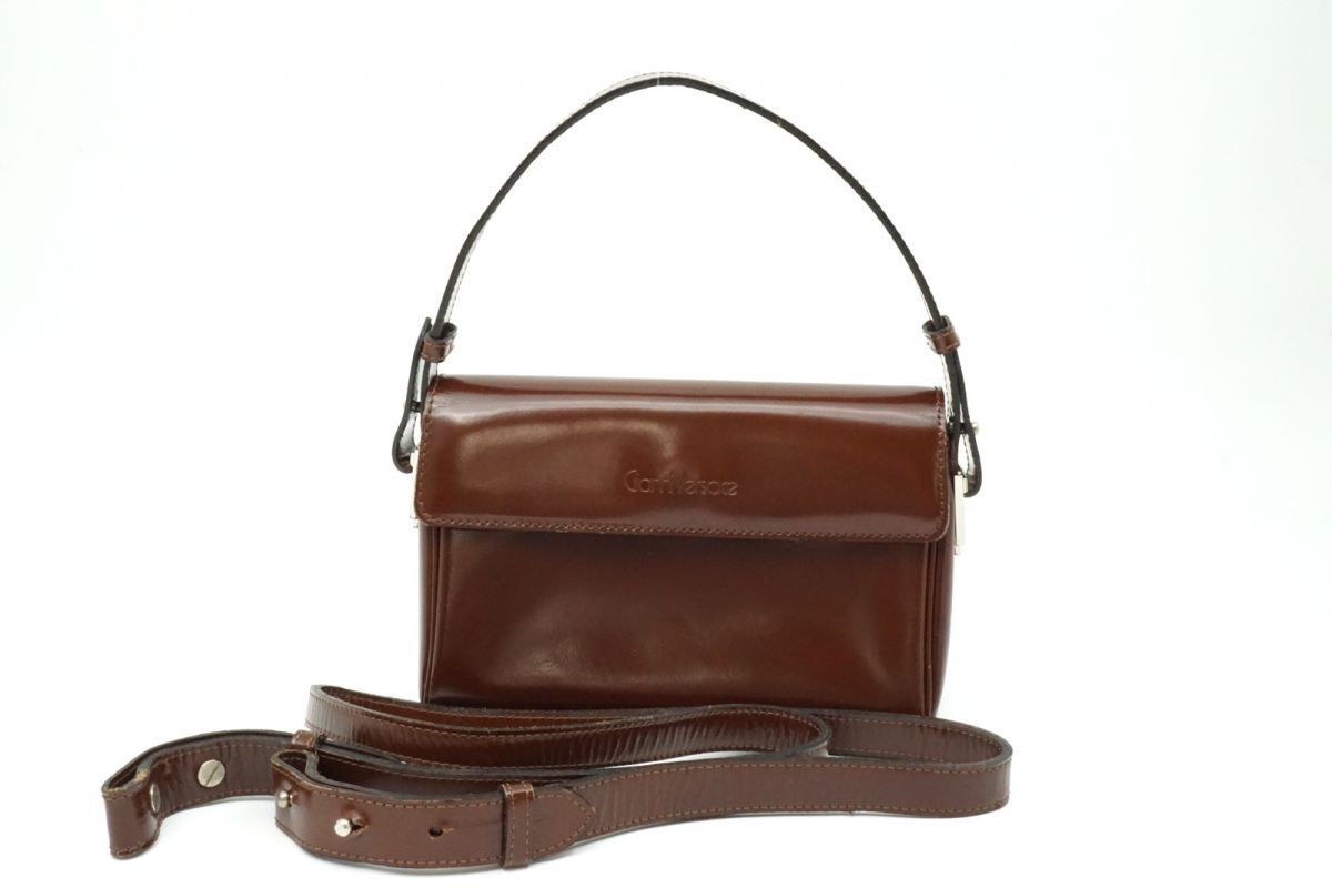- ジャンニ ヴェルサーチェ ヴィンテージ 2way ショルダー ハンドバッグ 型押しロゴ レザー 茶 ブラウン GIANNI VERSACE 3627h