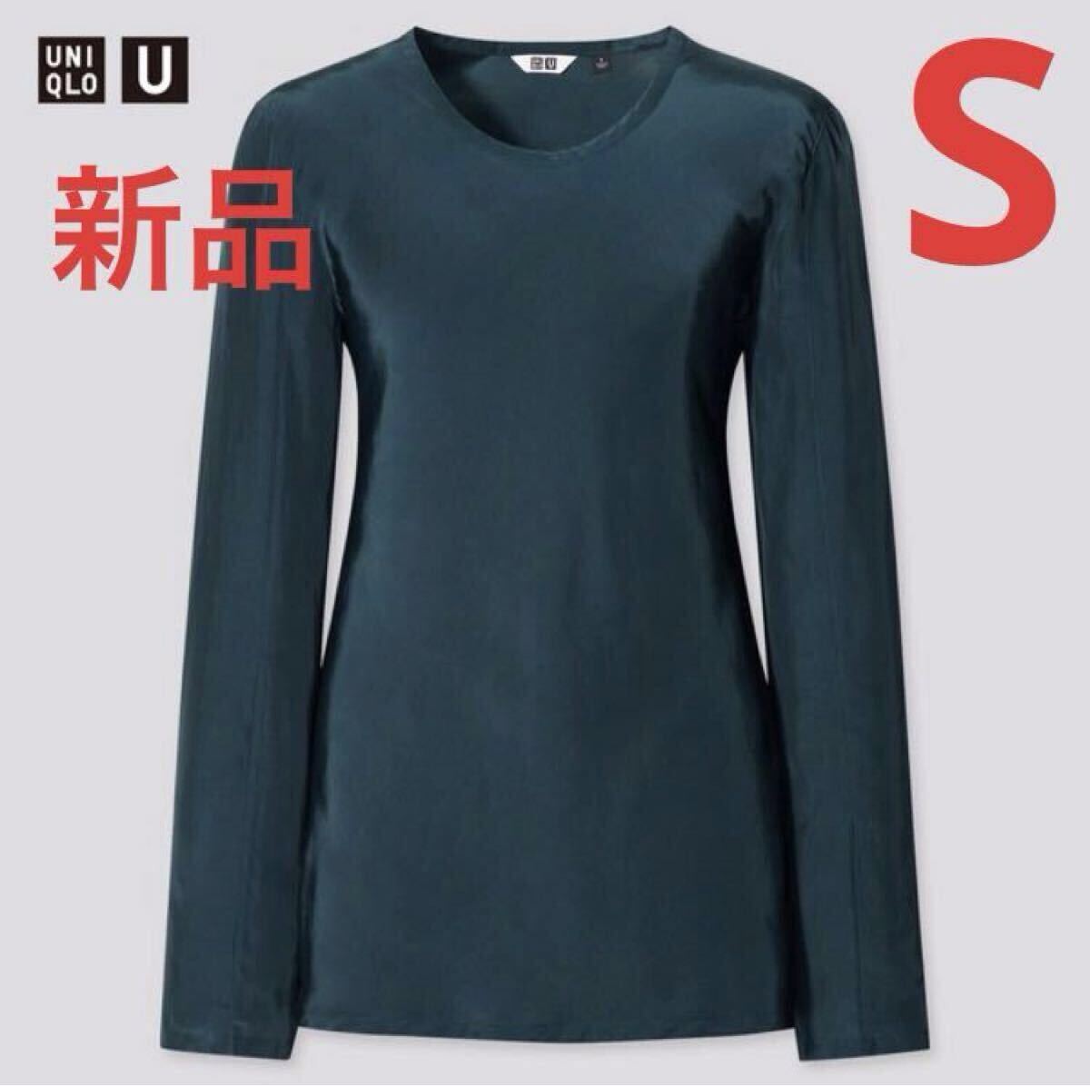 - 新品 ユニクロ シャイニーレーヨンブラウス(長袖)ダークグリーン S
