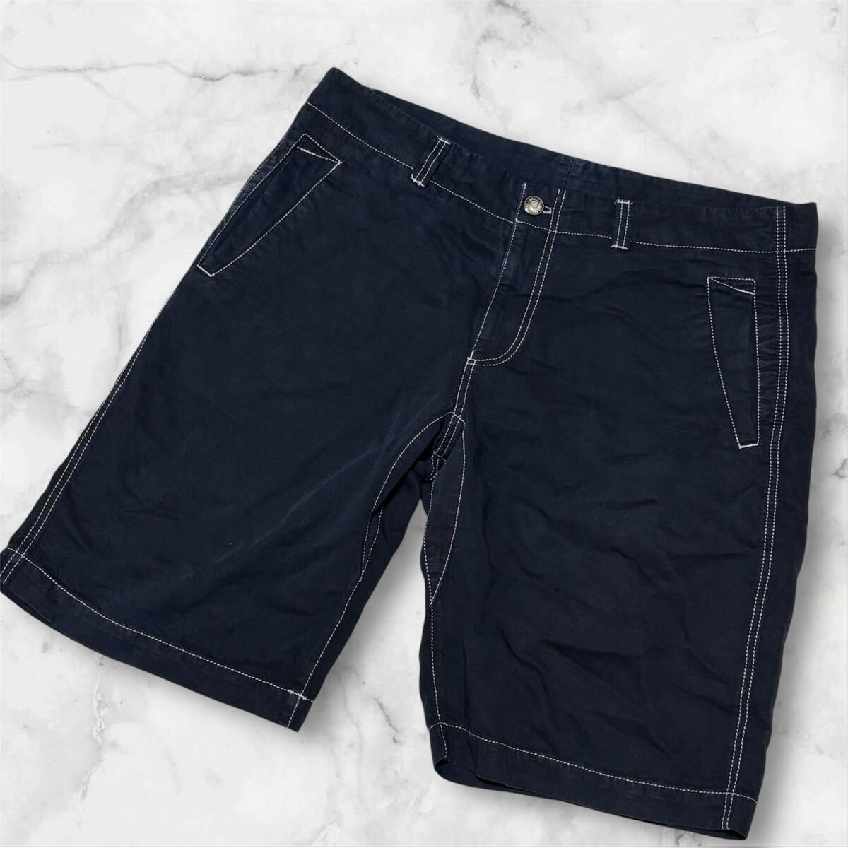 - 希少54/XXXL相当◎アルマーニ ARMANI COLLEZIONI ショートパンツ ハーフパンツ ロゴボタン ステッチ アジャスター ビックサイズ ネイビー