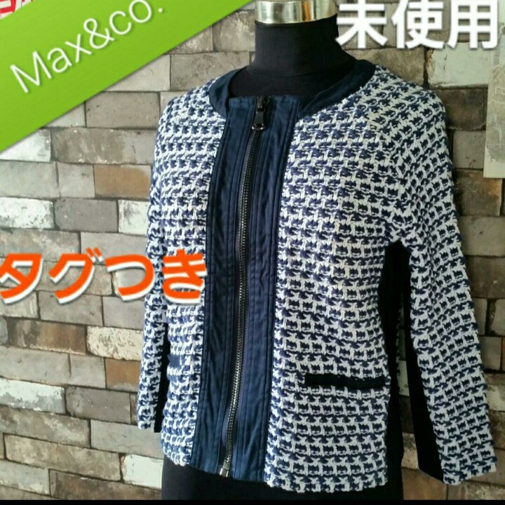 - ジャケット ジップアップ ネイビー 白 MAX&Co ツイード フルジップ