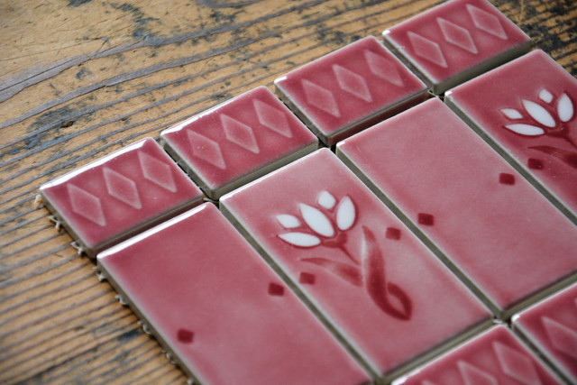 - NO.453 古いレトロなタイル 1/4シート 未使用品 検索用語→A500g花柄昭和レトロアンティークヴィンテージ古道具オブジェ材料リフォーム鍋敷
