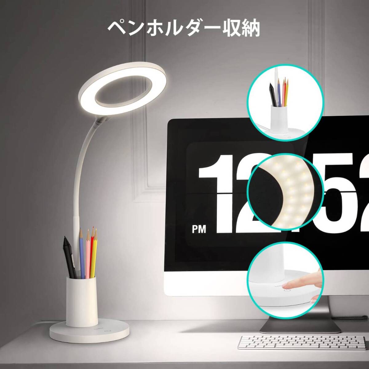 - 目に優しいスタンドライト、多角度調整機能付き