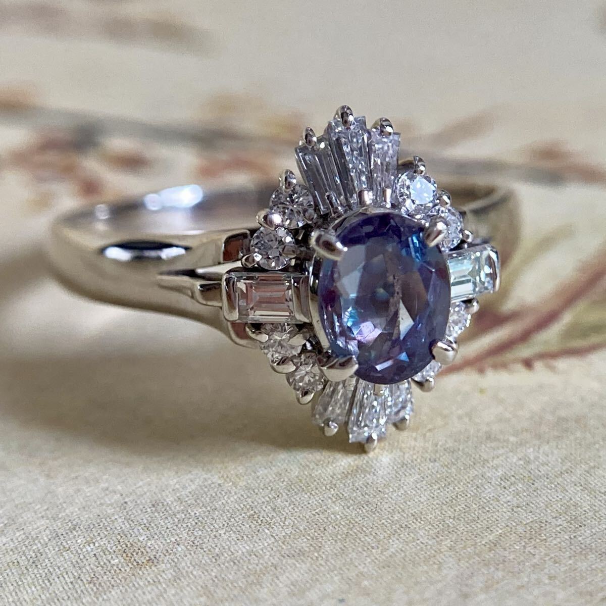- pt900 ヴィンテージ綺麗にカラーチェンジアレキサンドライト0.71ct 指輪 リング 天然ダイヤモンド