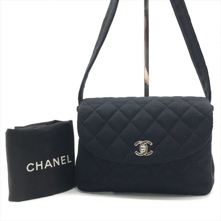 - 1円 美品 CHANEL シャネル マトラッセ ココマーク コットンキャンバス ショルダー バッグ ブラック レディース かばん 鞄 カバン a10066