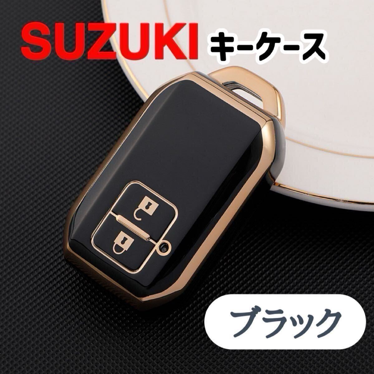 - スズキ キーケース キーカバー キーホルダー ハスラー他 ブラック おしゃれ 黒 ゴールド縁