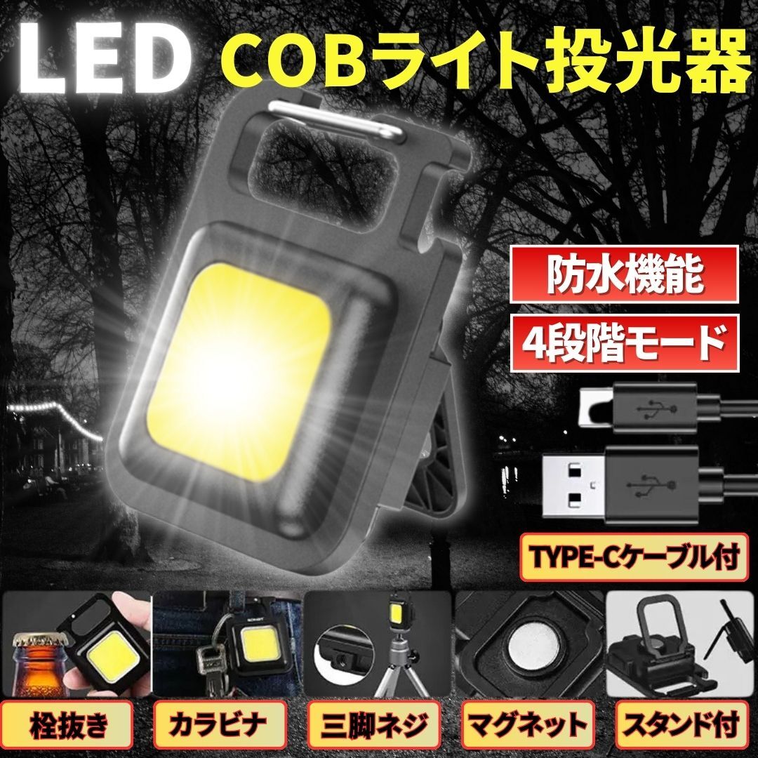 > LED COB ライト ミニ投光器 作業灯 小型 軽量 懐中電灯 ワークライト 照明 高輝度 マグネット USB充電ケーブル付 防水 キーホルダー カラビ