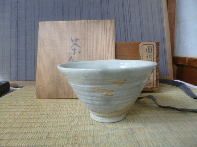 - 四日市万古焼灰釉茶碗・円相舎可久・共箱