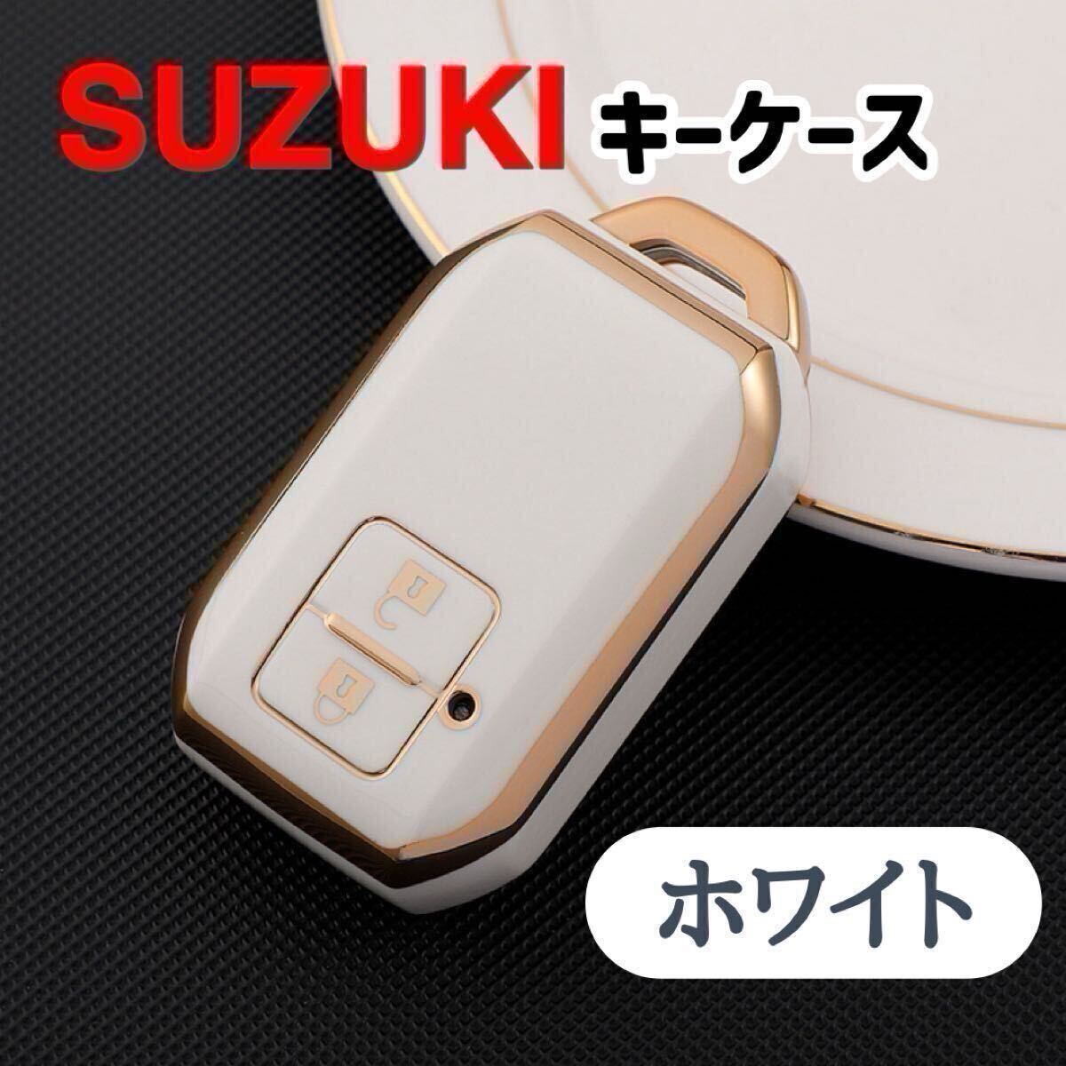- スズキ キーケース キーカバー キーホルダー ハスラー他 ホワイト おしゃれ 白 ゴールド縁