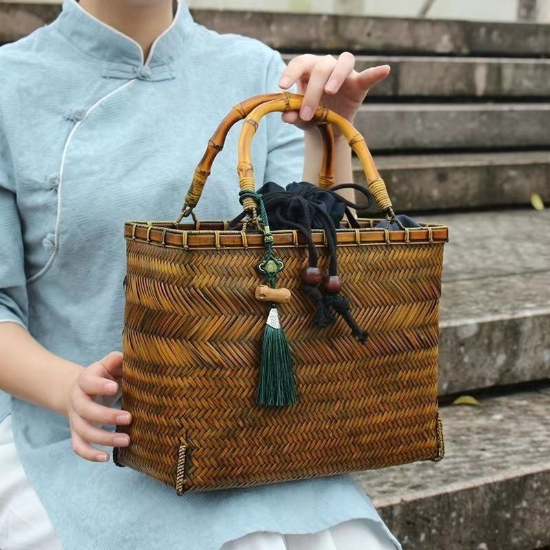 - 高級感満載!バスケット 収納かご おしゃれ竹籠 編み 取っ手 持ち手 手作りトートバスケット 持ち手 自然の良品