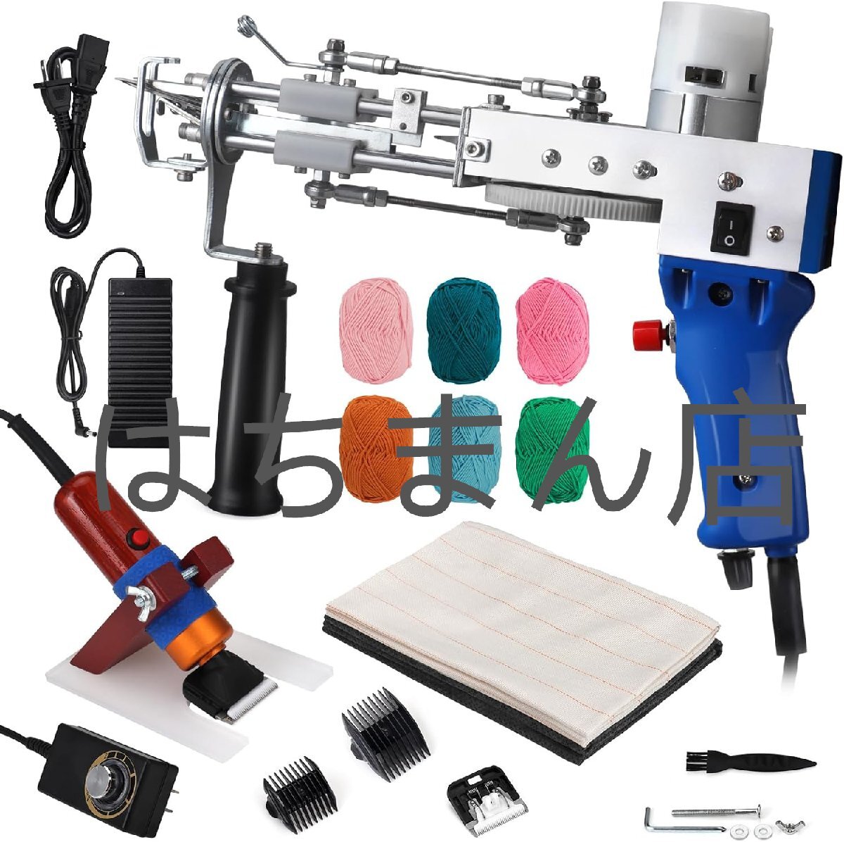 - タフティングガン ラグ編み機 カーペットトリマー付き タフティング生地 6ロールタフティング糸 (ブルー)