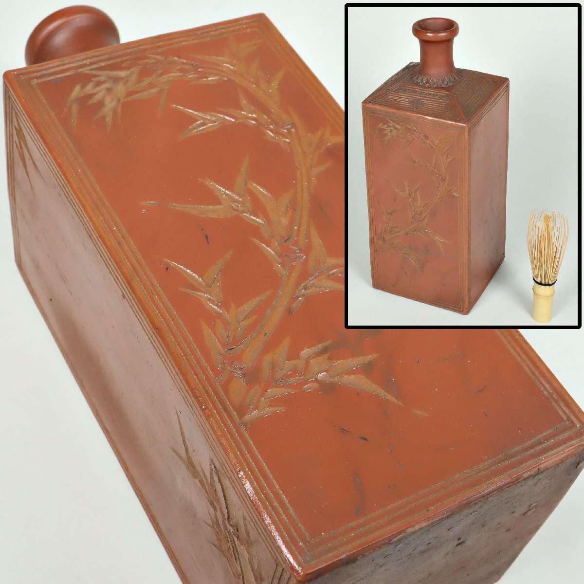 - 幕末~明治期 備前焼 角徳利 竹図彫 保命酒徳利 鞆徳利 備後 鞆の浦 酒器 陶磁器 骨董品 美術品 823426uqN