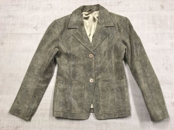 > レトロ モード カントリー 古着 本皮 本革レザー スネークスキン風総柄 テーラードジャケット レディース 2つボタン M ベージュ系