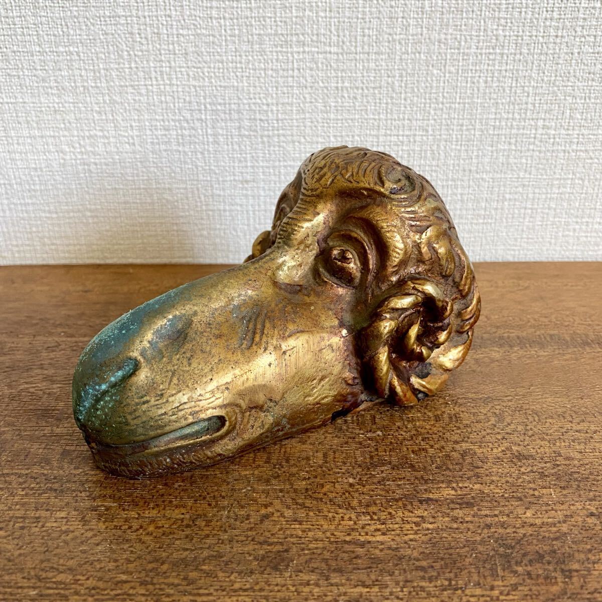 - ヴィンテージ 羊の頭部を形どったオブジェ 真鍮製 / 全長約13㎝ 置物 ブラス ひつじ アンティーク