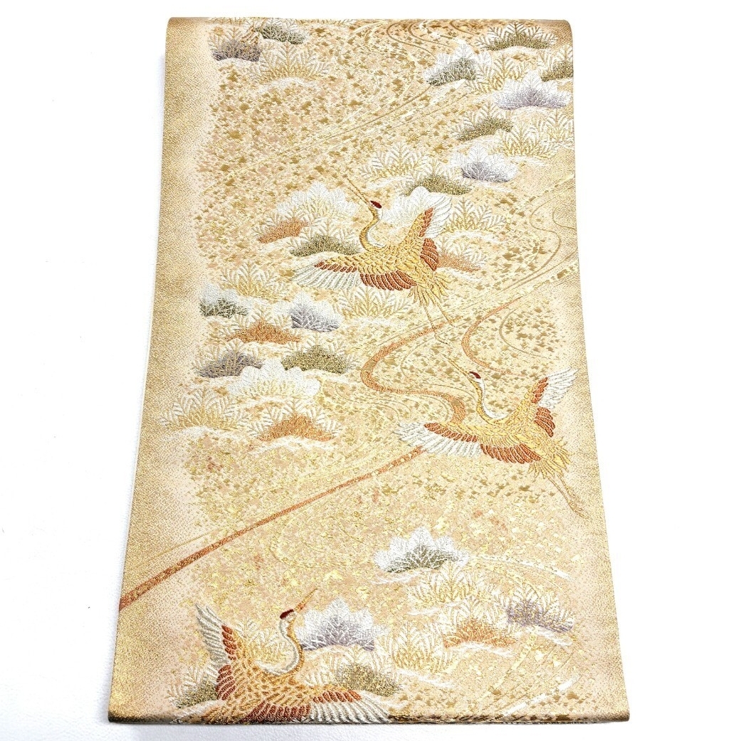 - 帯199 本金箔 高級 正絹 六通 袋帯 鶴松 tehjdhc