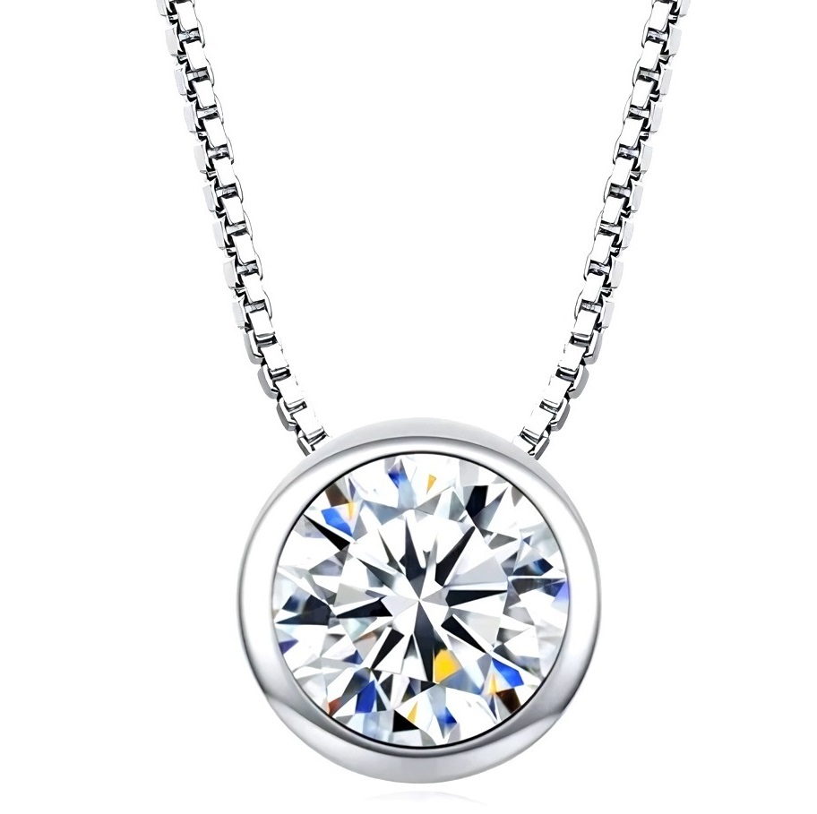 - 新品★送料無料★大粒ダイヤモンド 1粒ラウンド プラチナ仕上925シルバーネックレス 誕生日プレゼント旅行連休秋祭冬休ギフト国内発送