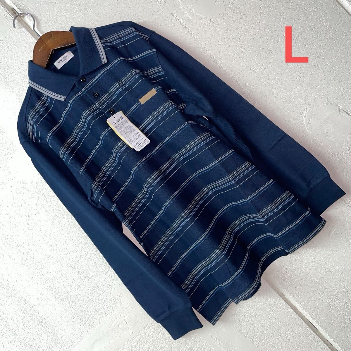 - Lサイズメンズ胸ポケット長袖ポロシャツネイビー