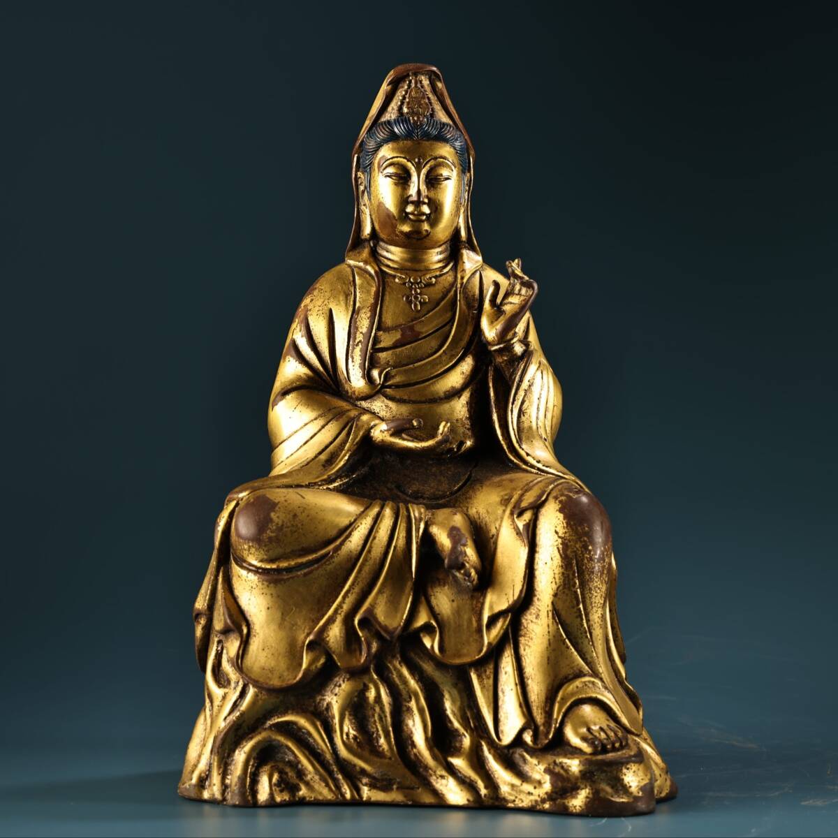 - 【超珍館蔵】銅製 塗金 觀世音菩薩像 仏像 宗教 仏教古美術 供養品 古賞物 古董品 古美術品 時代物 旧家蔵出 稀少珍蔵品