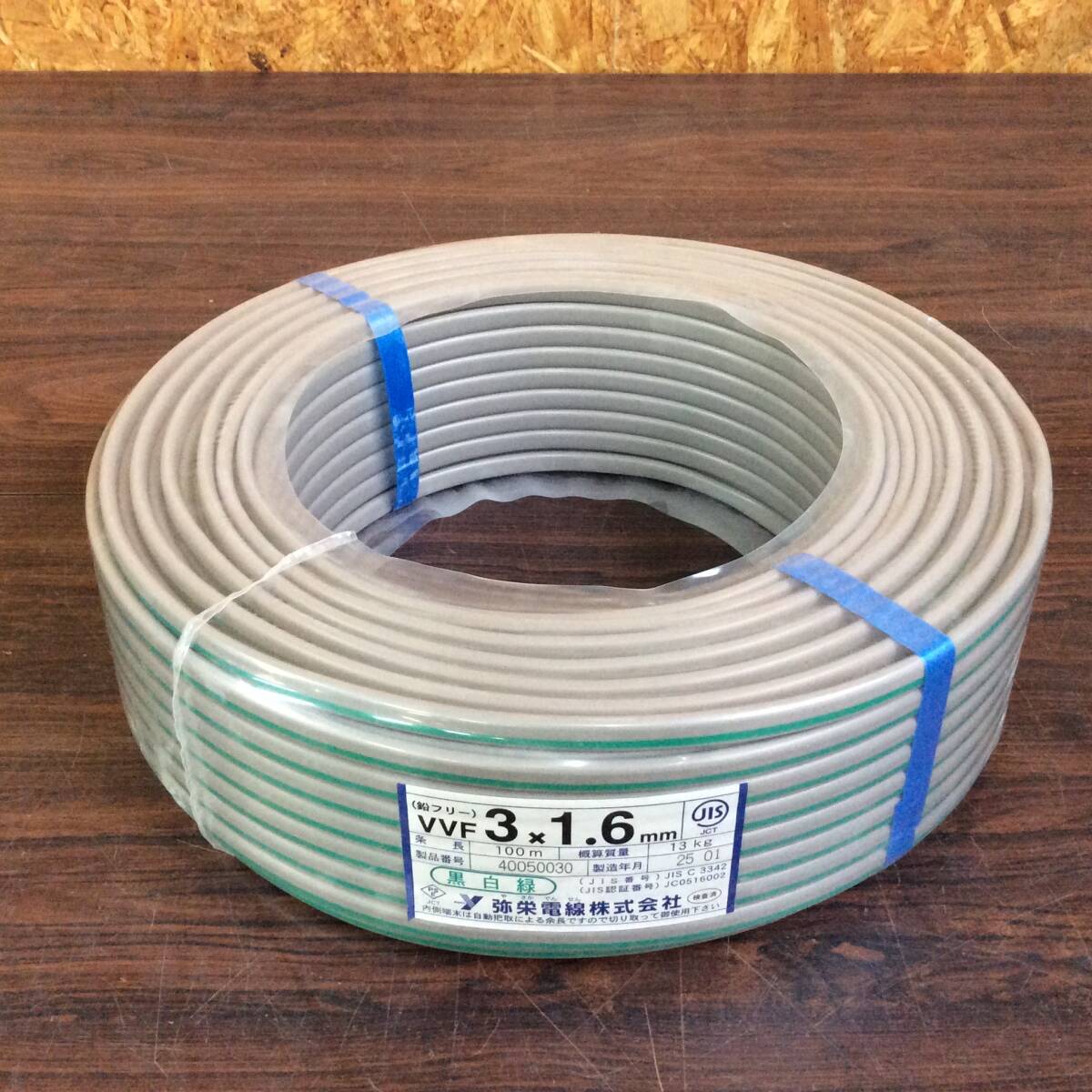 - 【WH-8149】未使用 弥栄電線 VVFケーブル 3×1.6mm 100m 黒白緑 2025年製