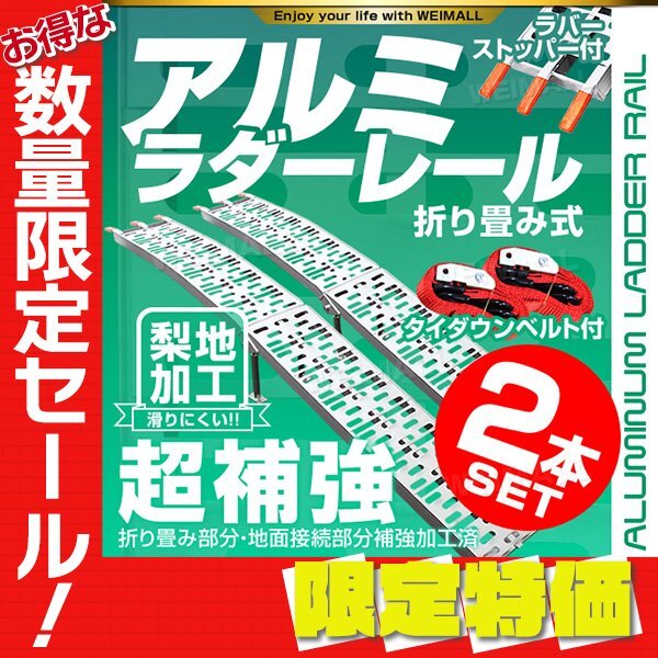 - 【限定セール】2本セット バイクレール アルミラダーレール 折り畳み式 ブリッジ スロープ スタンド ベルト付 バイク 車両 運搬 積込み B
