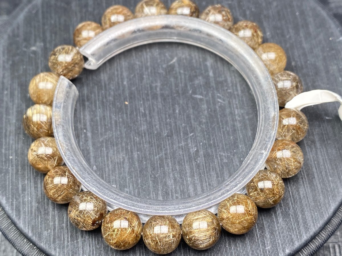 - 即決 0616k521 天然美品★【100Aシルバールチル】★銀針水晶ブレス 9-9.5mm(新品)