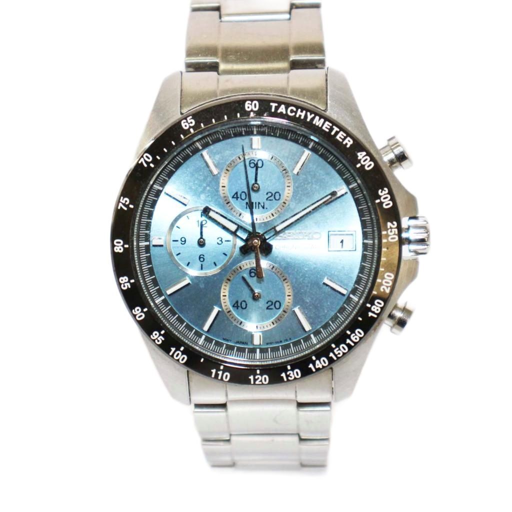- セイコー SEIKO 腕時計 クオーツ クロノグラフ シルバーカラー 水色 8T67-00C0 /KH ●D メンズ