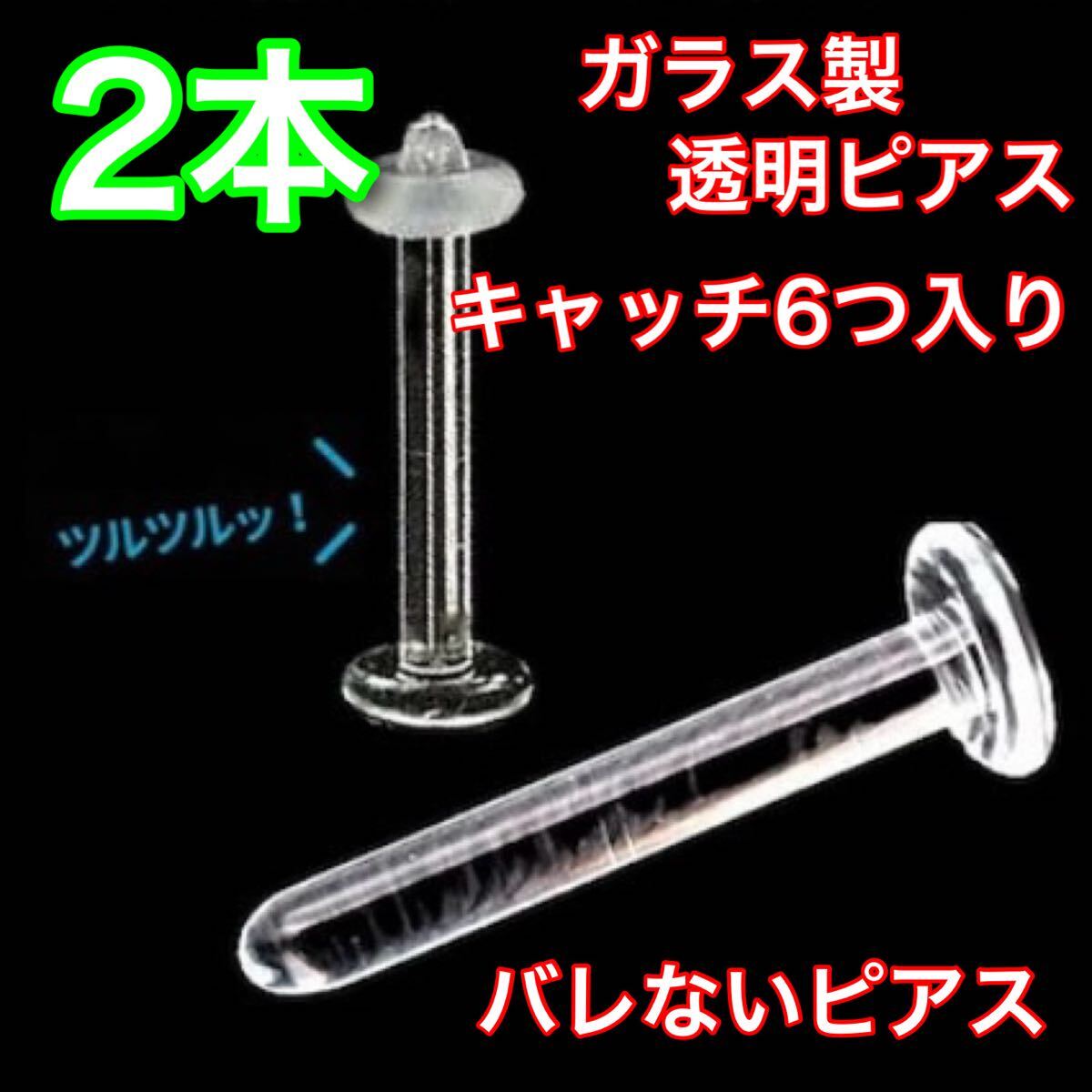 - ガラス製 透明ピアス 14g 12mm 2本セット ストッパーリング付き