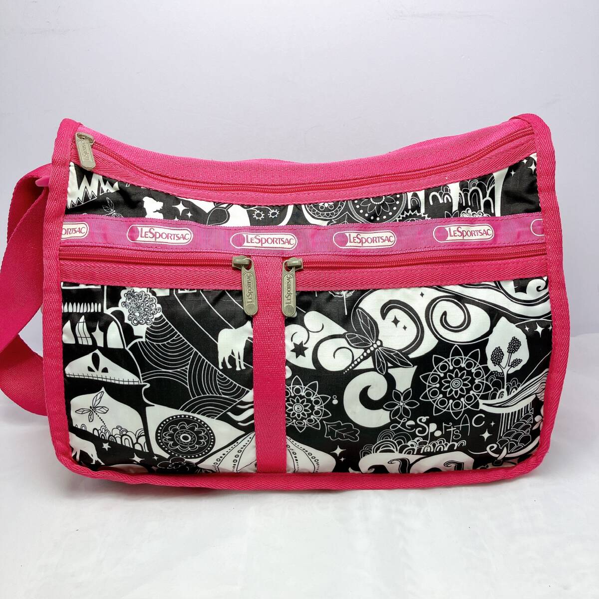 - BG242○ Lesportsac レスポートサック ショルダーバッグ レディース ピンク ブラック 黒 トンボ 動物柄 ナイロン キャンバス ファスナー