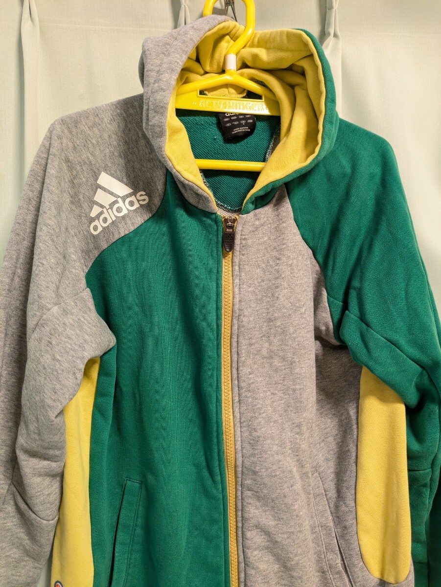 - アディダス フットサル クレイジーカラー パーカ スウェット ジャージ グリーン イエロー グレー S 緑黄灰 サッカー climalite