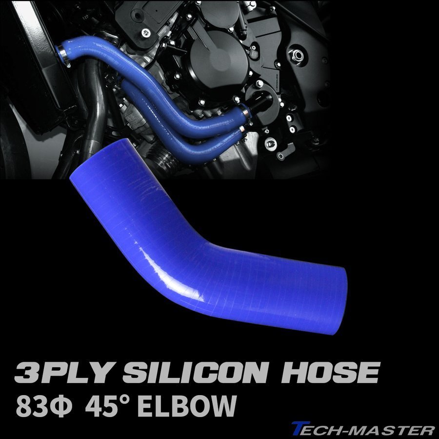> 汎用 シリコンホース 内径83mm 45度 エルボ 高強度 3層 肉厚4.5mm ブルー 内径83Φ 45° 外径92mm SE013