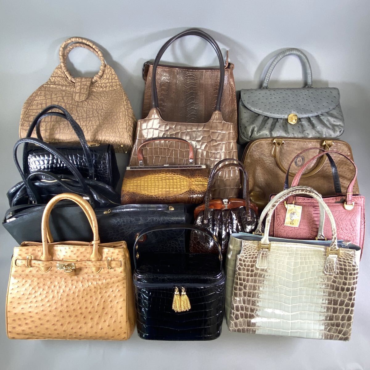 - i18 15点まとめ エキゾチックレザー クロコダイル オーストリッチ クロコ本革 まとめ売り シャイニングクロコ ハンドバッグ レザーバッグ