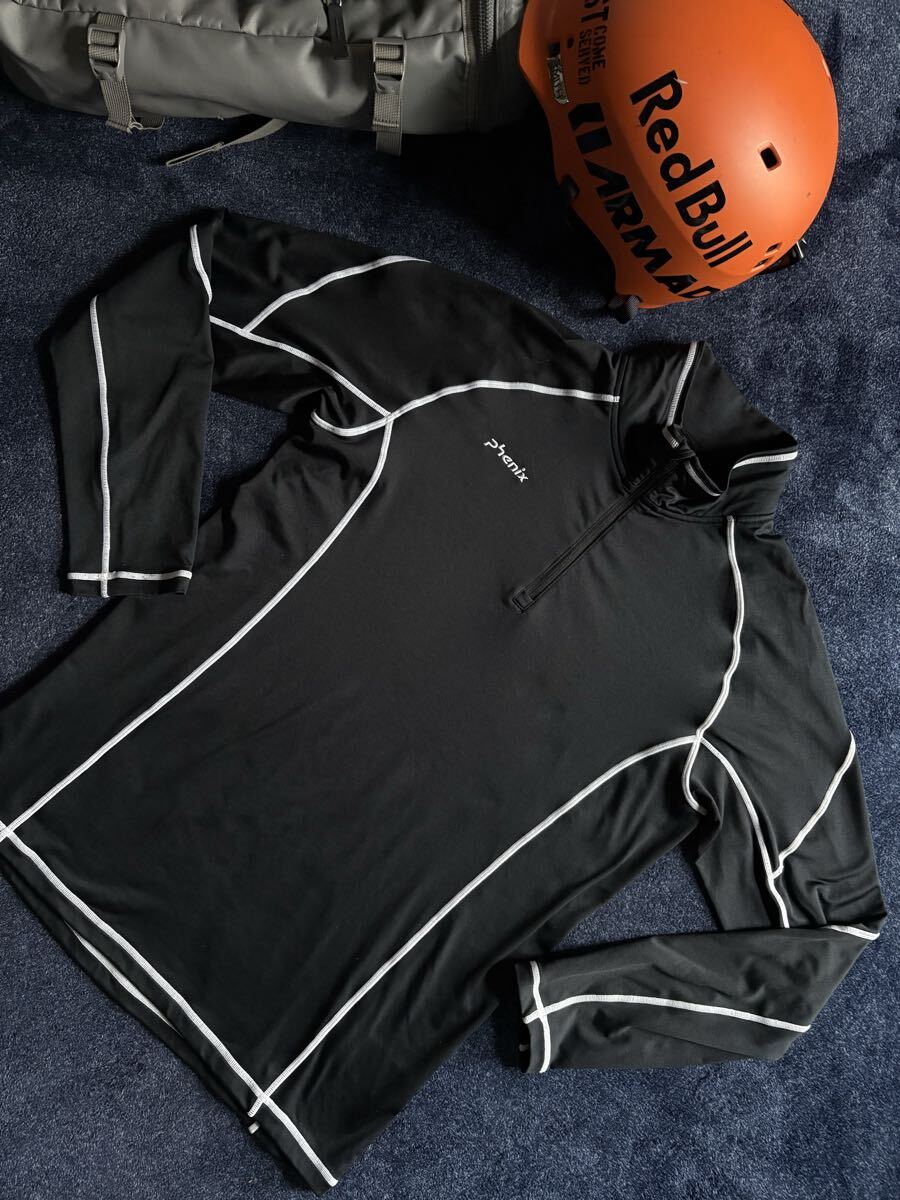 - 超美品 稀少 新品同様 フェニックス phenix 高品質ストレッチ素材 ハイネック ハーフジップ sizeM ブラック系 人気アウトドアウエア