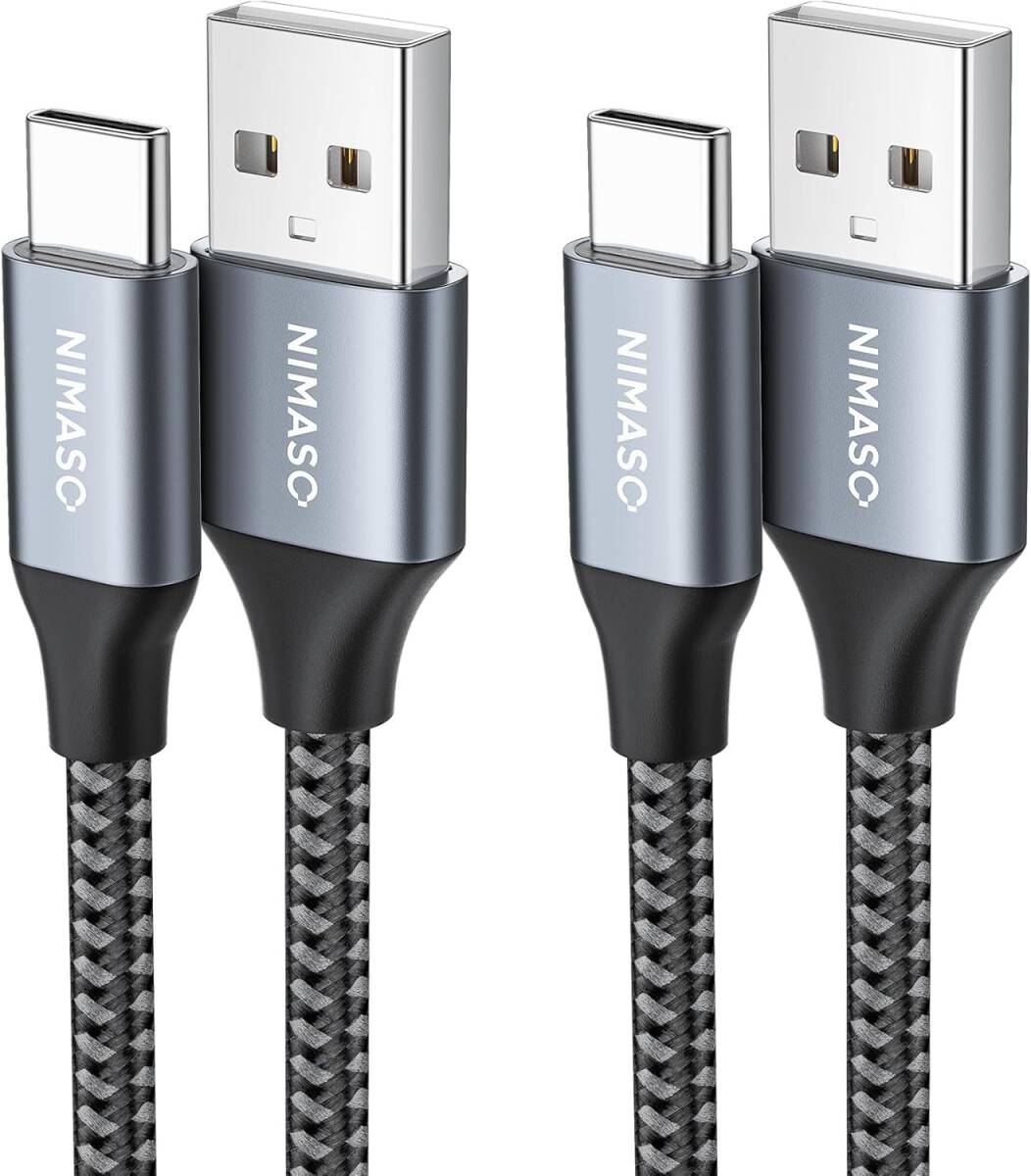 - グレー色 NIMASO USB Type C ケーブル 【1m/2本セット】 【QC3.0対応】 急速充電 USB-C & USB-A 3A タイプC 充電ケーブル