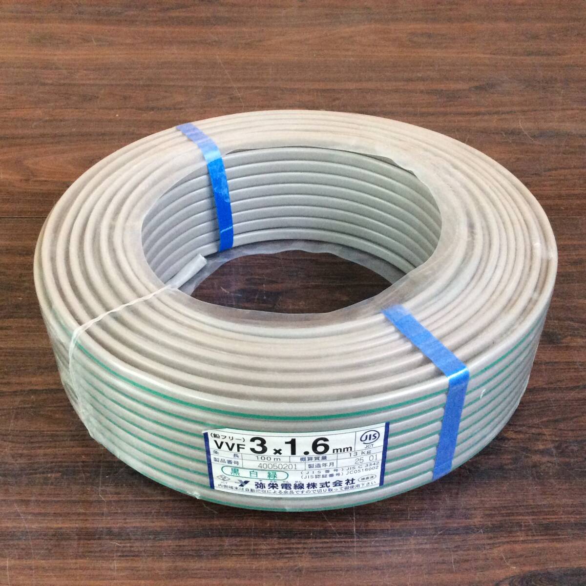 - 【WH-8150】未使用 弥栄電線 VVFケーブル 3×1.6mm 100m 黒白緑 2025年製