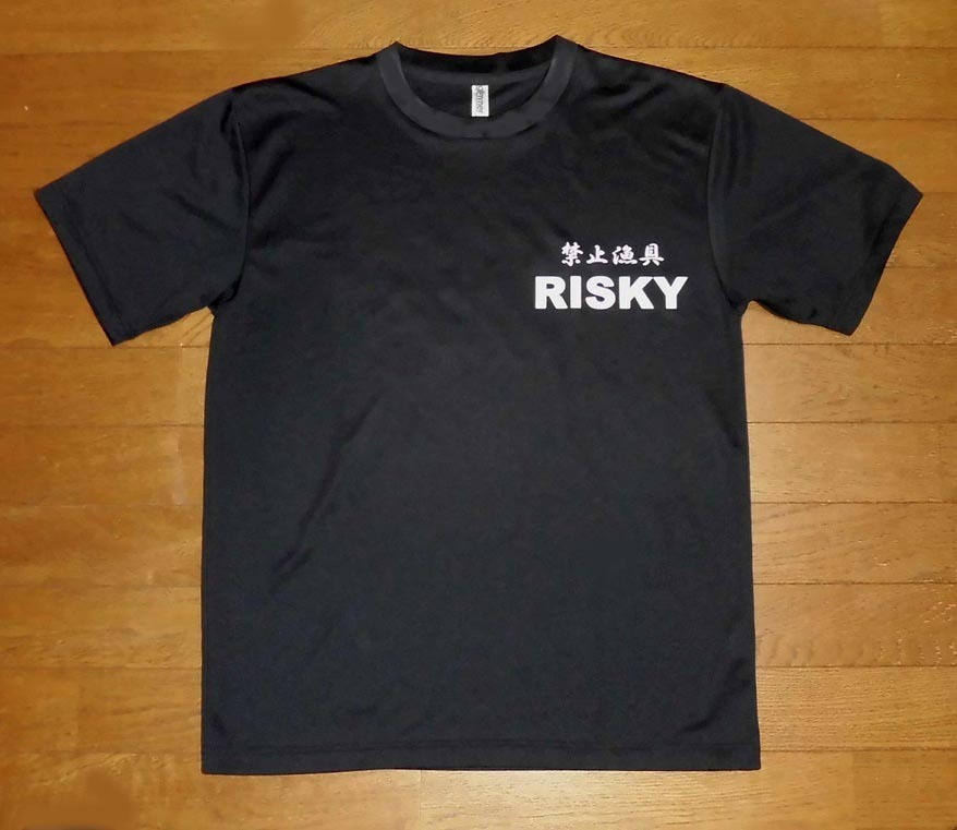 > RISKY 禁止漁具 KANJI リスキークラブ カンジ Tシャツ 半袖 ドライ BLK L ほぼ未使用 美品/ジギング青物アオリイカいか船スミス錫リスカス