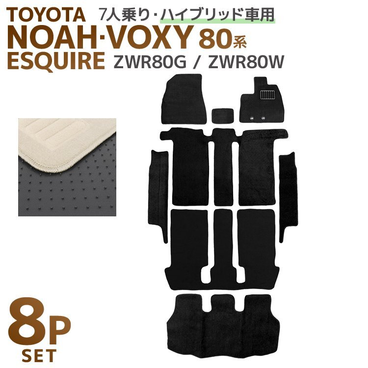 > トヨタ ノア・ヴォクシー・エスクァイア ハイブリッド車 7人乗用 フロアマット 8点セット ヒールパット付 ベージュ ZWR80G/ZWR80W 80系