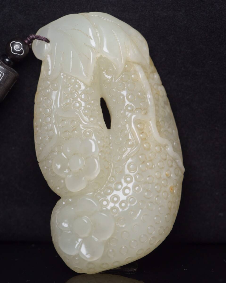 - 『館蔵珍品 和田玉製 細密彫 絲瓜 置物 賞物』文房具 書道品 貴重物品 収蔵品 中国古美術 時代物 古董品