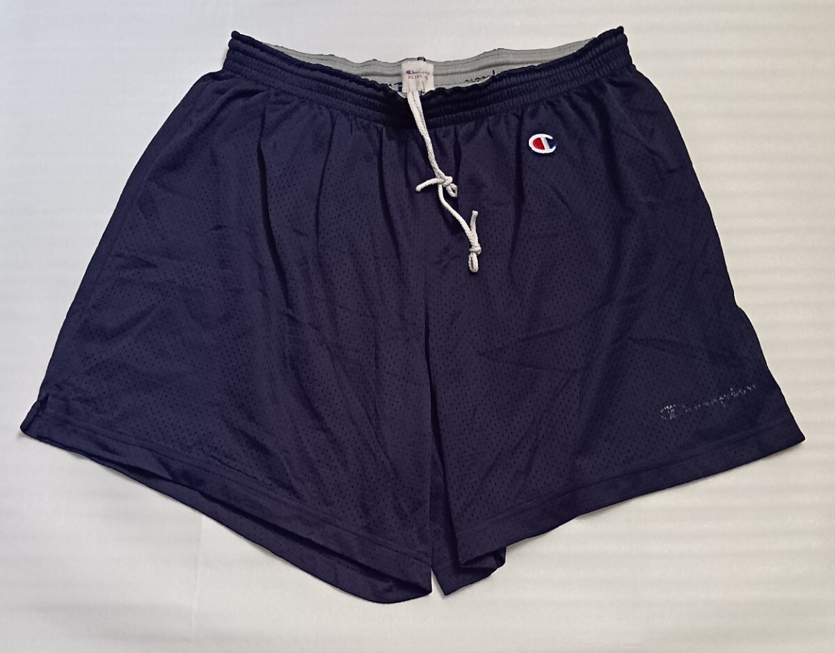 > ☆Champion サイズXL40-42ショート短パンツ半ハーフ紺ネイビー洗濯済メッシュ/総裏地ズボンLLスポーツ ファッション ボトムス チャンピオン