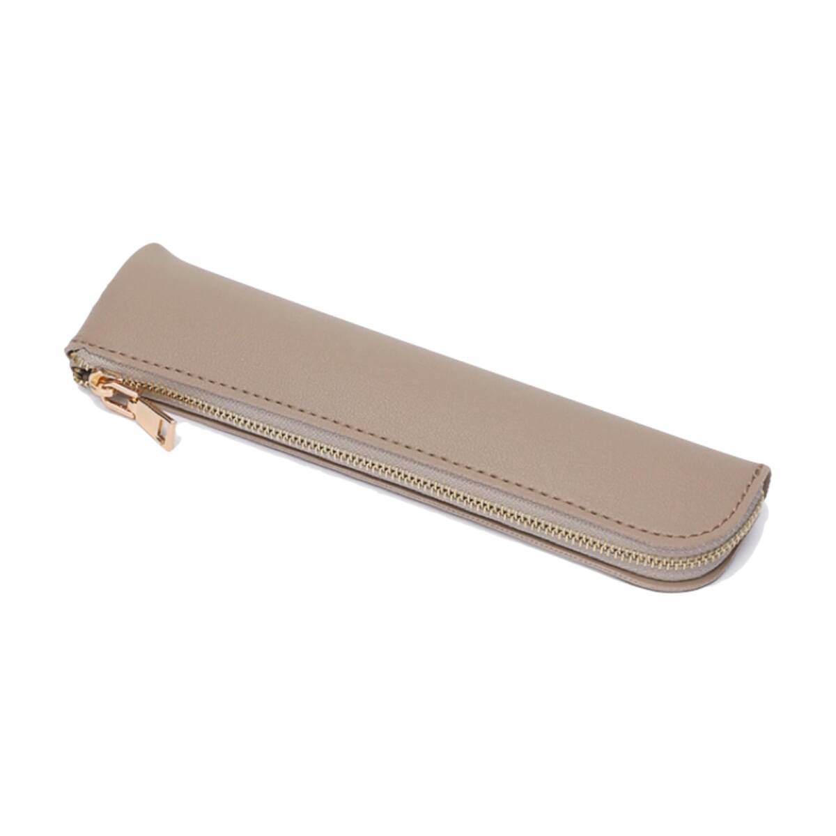 - シンプル コンパクト くすみカラー スリム (アイボリー) ペンケース 大人可愛い